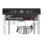 Profesjonalna, stylowa maszyna elektryczna do popcornu RCPW-16.3 z mobilnym wózkiem to sprzęt idealny dla kin, stoisk eventowych, budek gastronomicznych czy festynów. Dzięki wysokiej wydajności i atrakcyjnemu designowi z pewnością przyciągnie uwagę i zwiększy sprzedaż.