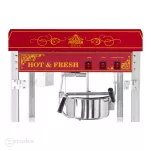 Profesjonalna, stylowa maszyna elektryczna do popcornu RCPW-16.3 z mobilnym wózkiem to sprzęt idealny dla kin, stoisk eventowych, budek gastronomicznych czy festynów. Dzięki wysokiej wydajności i atrakcyjnemu designowi z pewnością przyciągnie uwagę i zwiększy sprzedaż.
