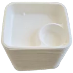 Biodegradowalna tacka z komorą na sos wykonana z naturalnej trzciny cukrowej to doskonała alternatywa dla plastikowych opakowań. Dzięki osobnej przestrzeni na dip, tacka idealnie nadaje się do nachosów, frytek, przekąsek i dań street food. Tacka jest odporna na działanie wysokich i niskich temperatur, w pełni kompostowalna i przyjazna środowisku.