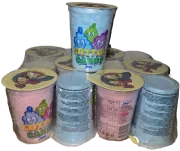 Każdy kubeczek to porcja czystej radości w jednym z wielu atrakcyjnych kolorów i smaków – truskawkowym, bananowym, jabłkowym, multiwitaminowym lub w wersji klasycznej (biała, bez aromatu i barwnika).
